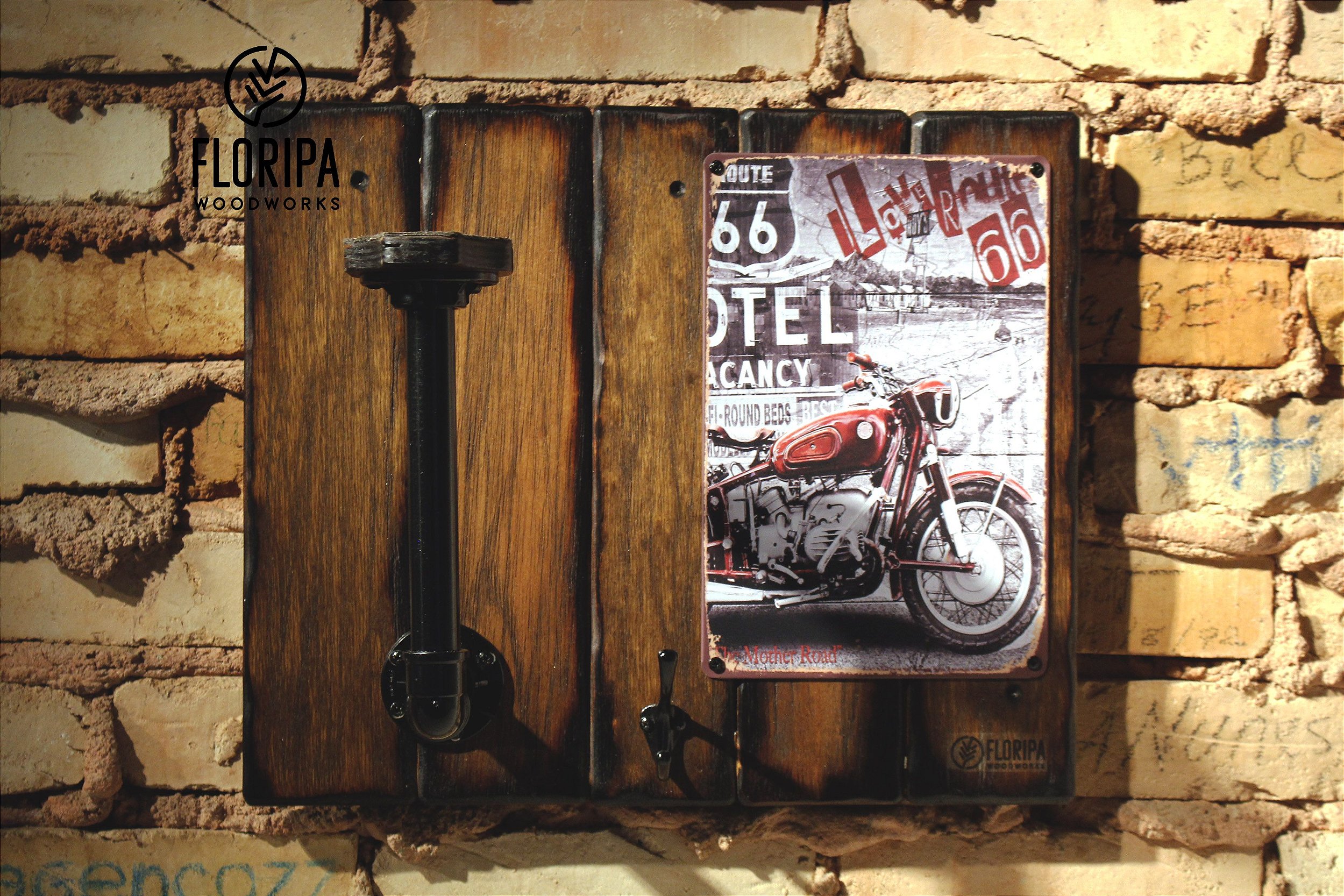 O Suporte de capacete é confeccionado em madeira, placa de metal e 1 gancho. Acomoda 1 capacete é ideal para motociclistas e aventureiros. Uma peça funcional e decorativa para guardar o capacete. Além de poder guardar outros itens como: Jaqueta, luvas, óculos e chaves. Caso queira uma medida específica, entre em contato!